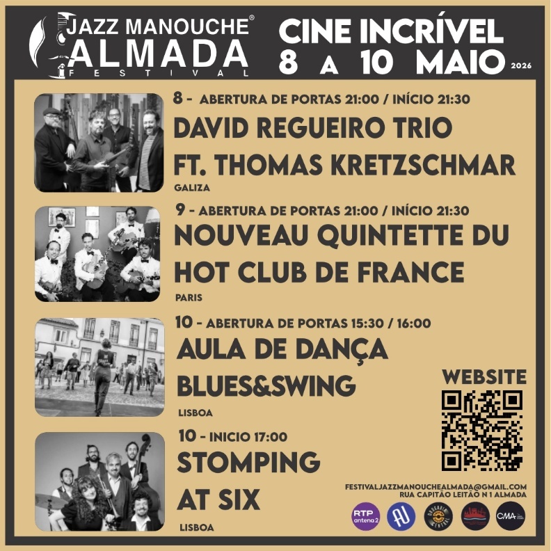 O Festival Jazz Manouche de Almada celebra a sua 5ª edição de 8 a 10 de maio, com uma programação internacional que cruza tradição e contemporaneidade. Artistas de França, Espanha e Portugal compõem um cartaz diverso, reafirmando o festival como uma plataforma de excelência artística e de projeção cultural da cidade de Almada no circuito internacional do jazz manouche.