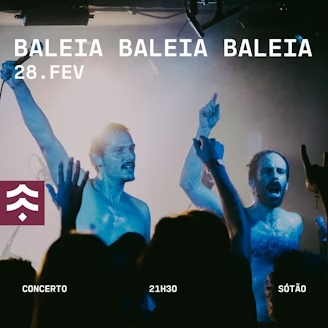 BALEIA BALEIA BALEIA Francisco Pereira 05/02/2026 BALEIA BALEIA BALEIA é uma dupla formada por Manuel Molarinho (baixo e voz) e Ricardo Cabral (bateria e voz), sediada no Porto. A banda surgiu MAIS »