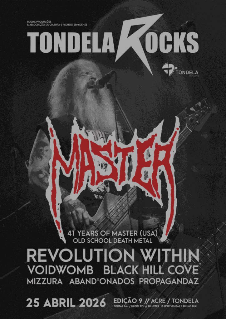 O grande destaque internacional da noite são os MASTER, veteranos norte-americanos e pioneiros do death metal, que celebram 41 anos de carreira com uma digressão mundial. A passagem por Tondela será data única em Portugal em 2026, prometendo um concerto histórico para os fãs do género.